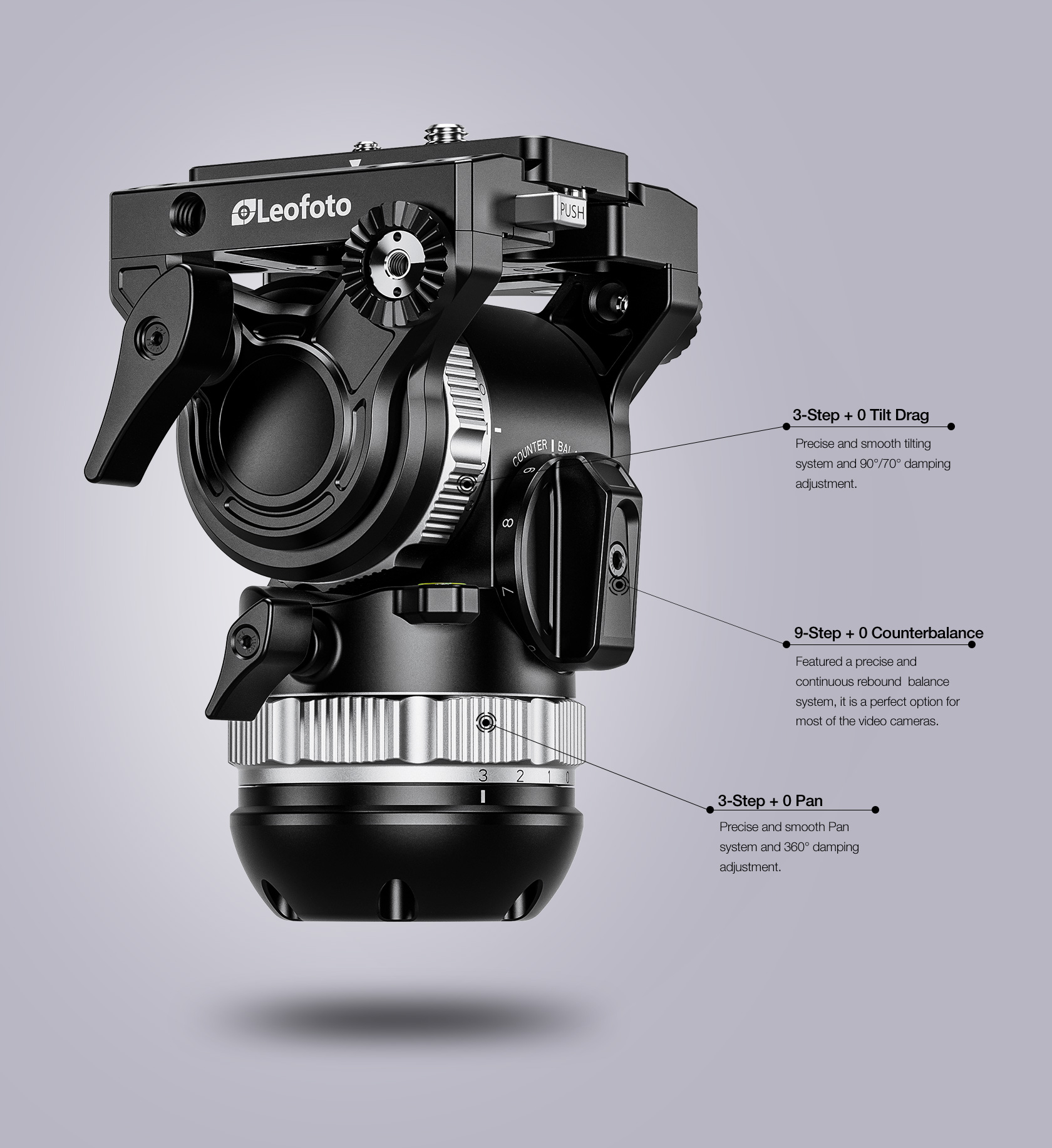 3-step pan drag + 0 and 3-step tilt drag + 0 for precise motion control