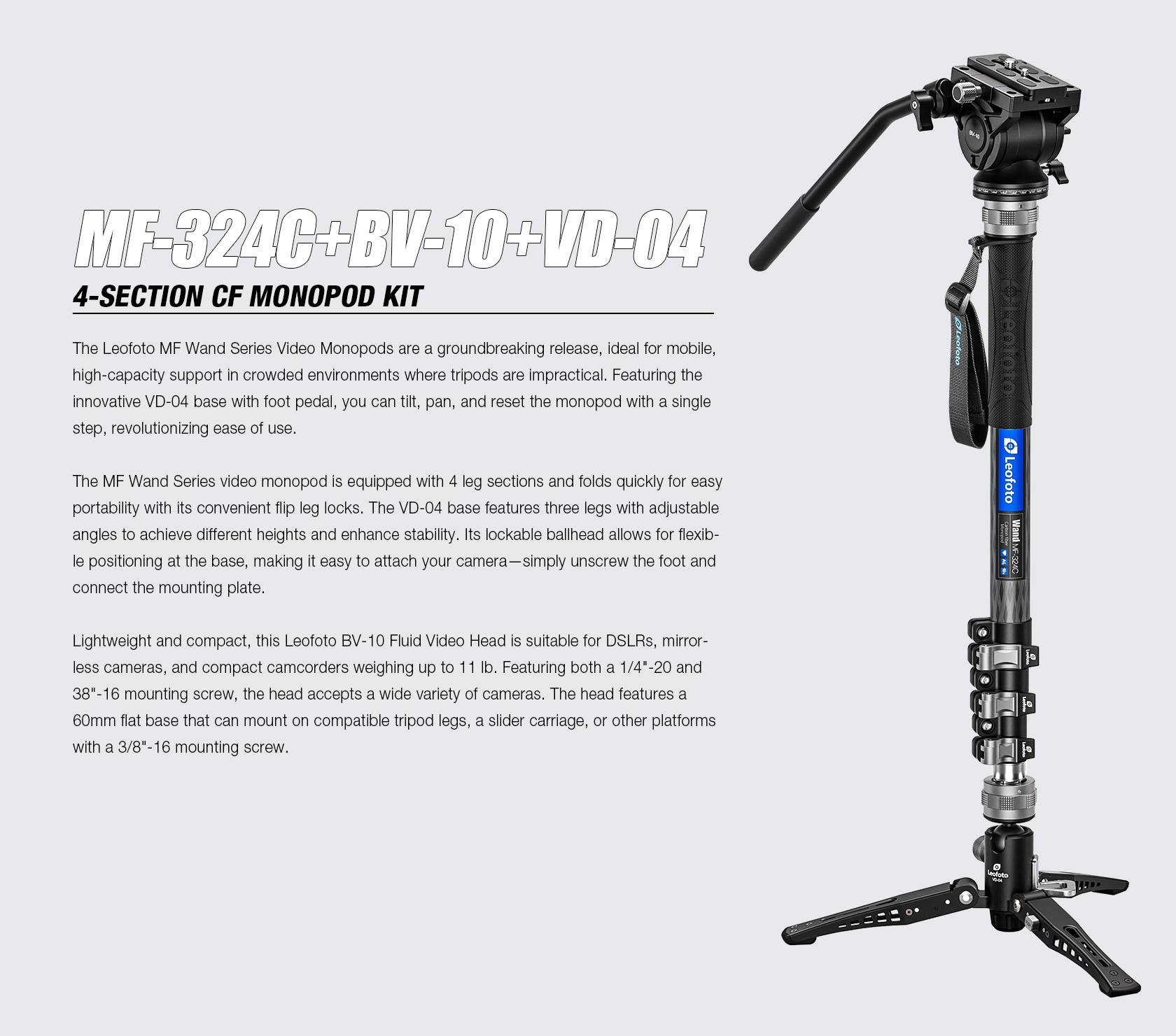 The Leofoto MF Wand Series Video Monopod is a groundbreaking release, ideal for mobile, high-capacity support in crowded environments where tripods are impractical. The monopod features 4 leg sections with convenient flip locks for quick folding and easy portability.