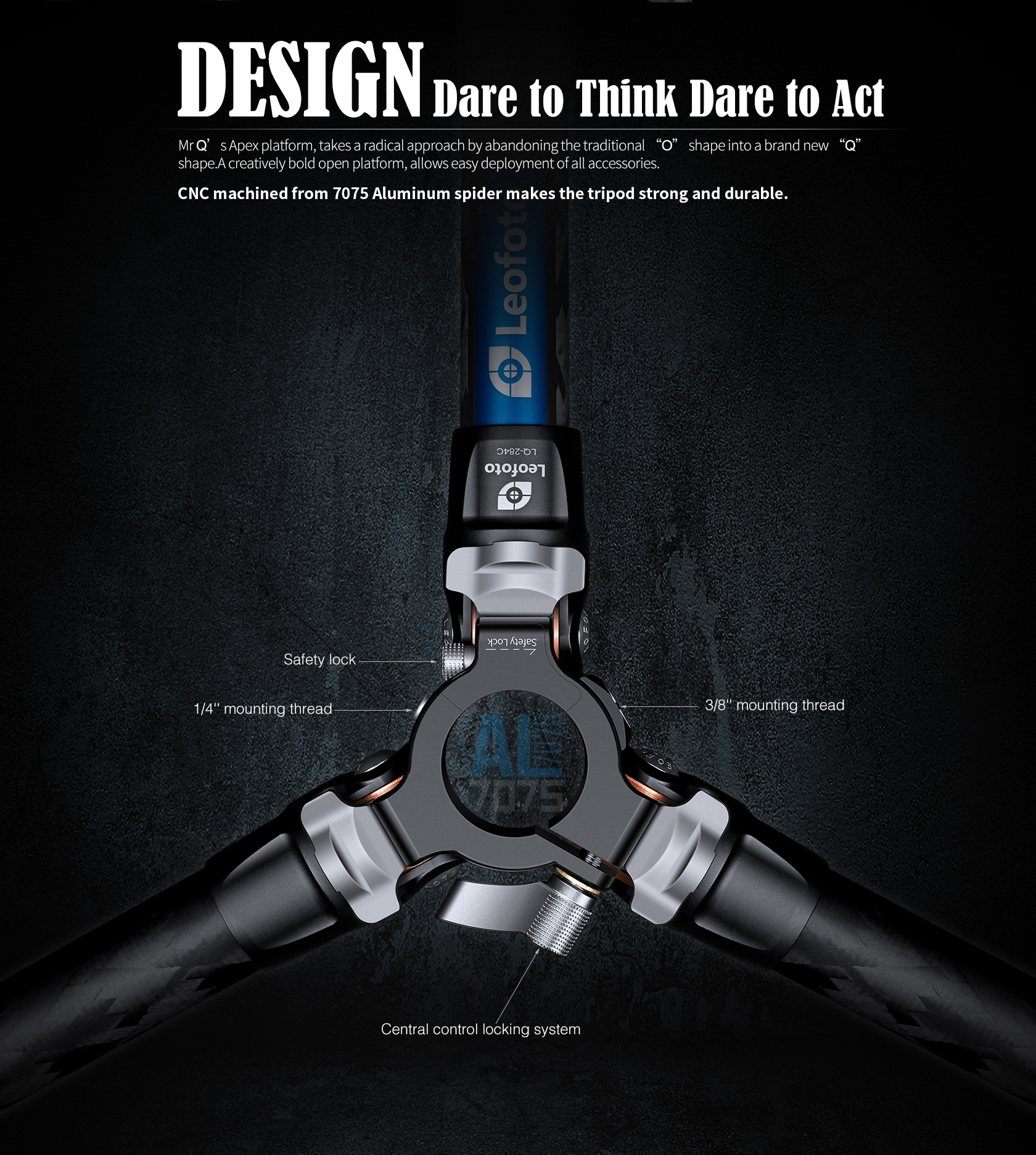 • CNC machined from 7075 Aluminum spider makes the tripod strong and durable.