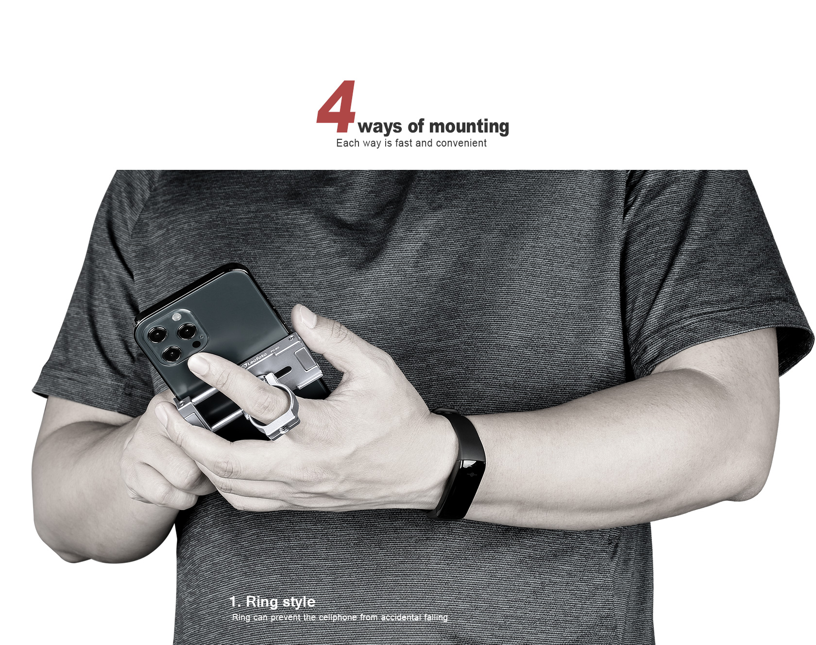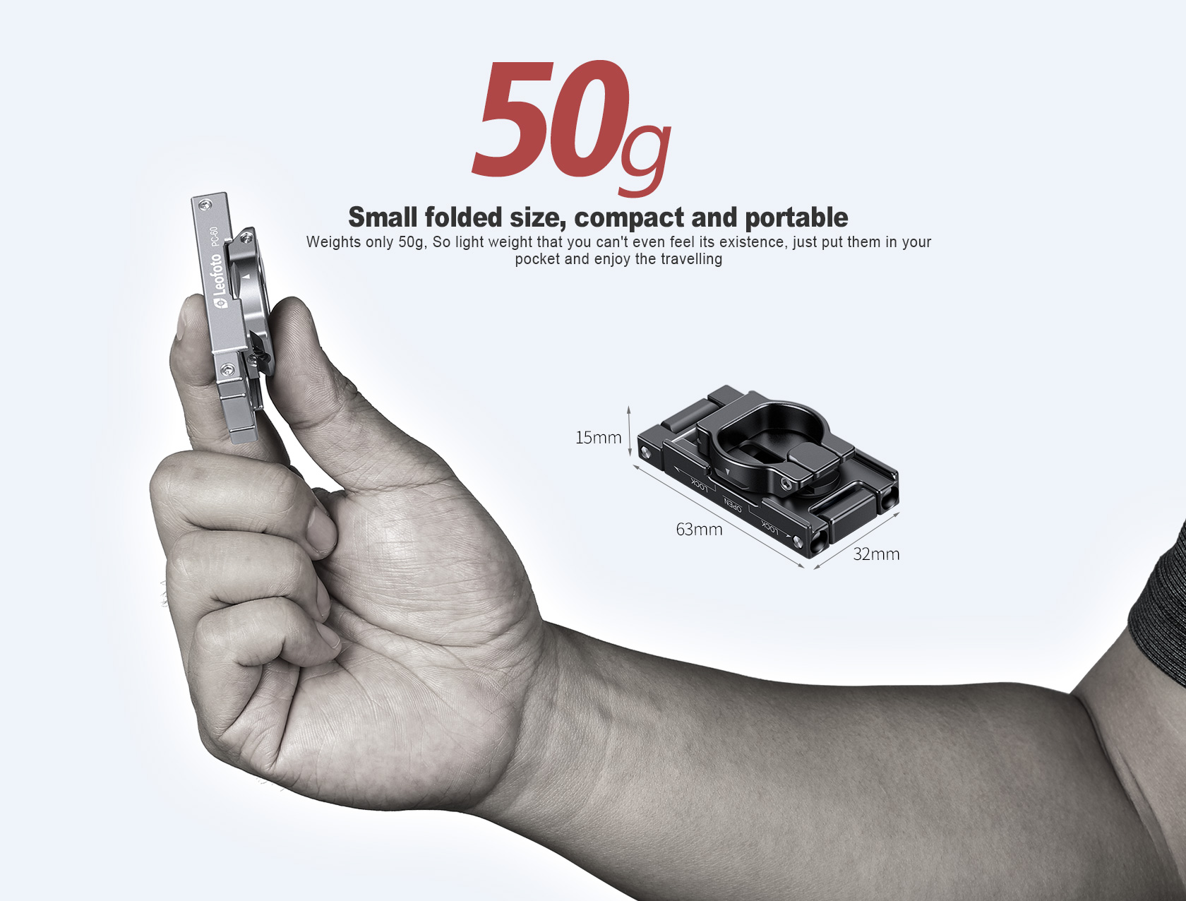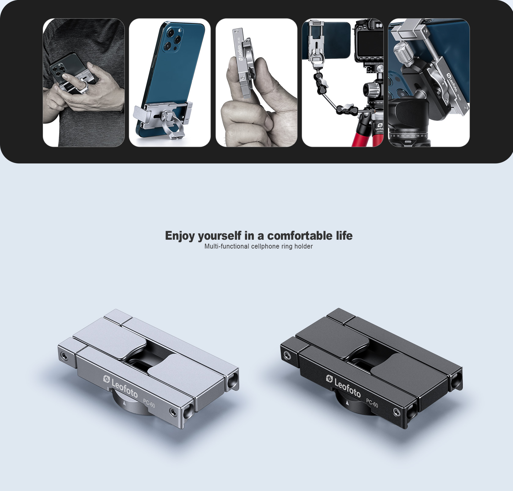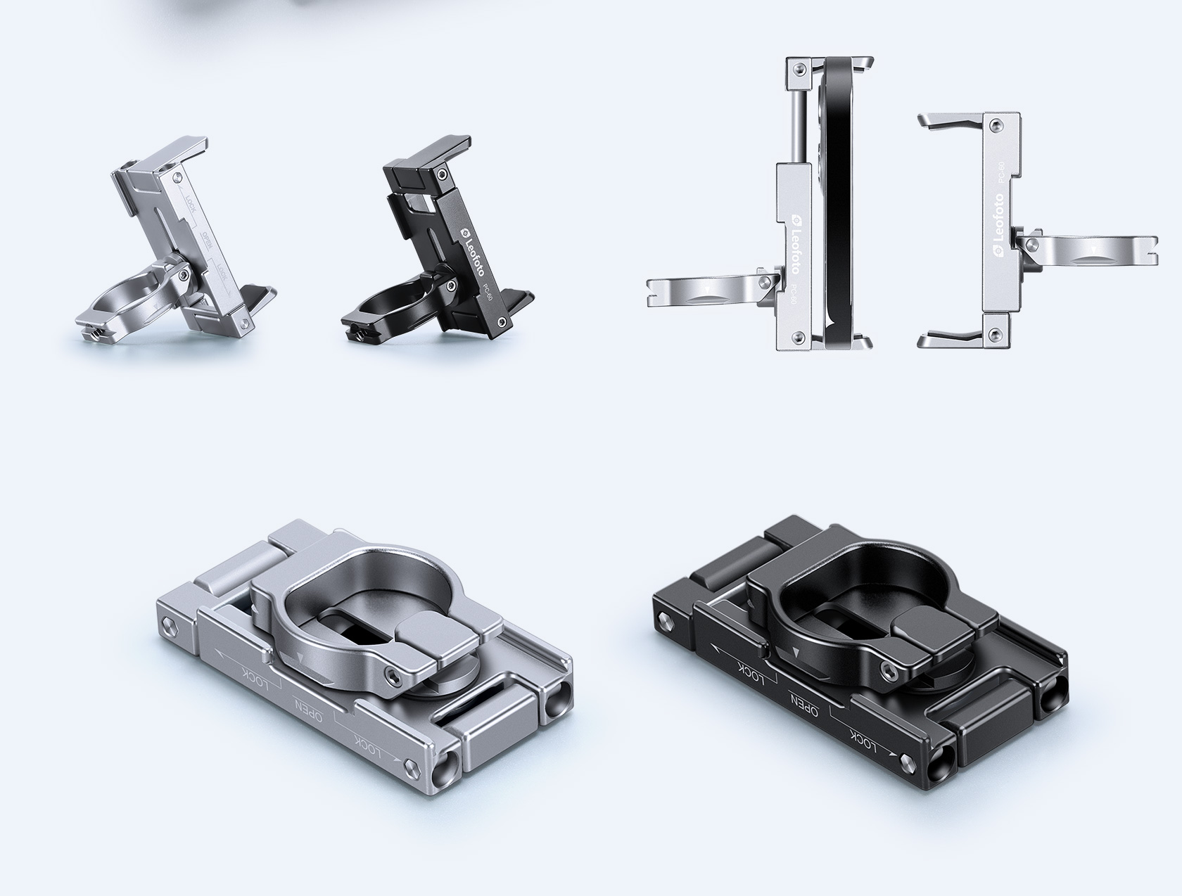 Leofoto PC-60 Mini Smartphone Clamp/Holder/Video/Selfie Stand with Arca-Compatible Dovetail in Black/Silver