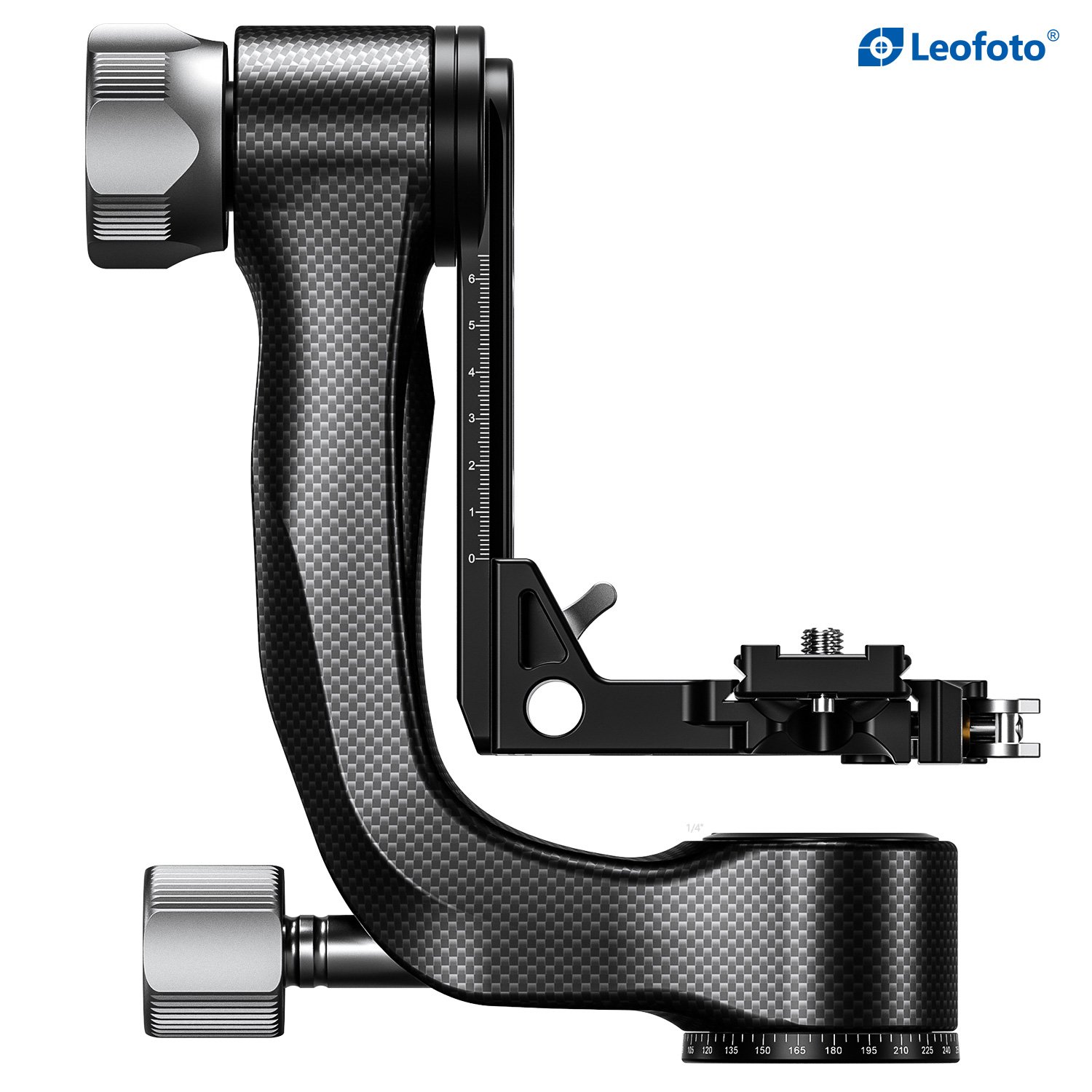 The Leofoto PG-3/L Carbon Fiber Gimbal Head is crafted from 10 layers of Toray carbon fiber, offering a lightweight yet robust gimbal setup. Its newly designed control knobs are smooth and positioned to avoid interfering with lens movement. The PG-3 allows photographers to track fast-moving subjects with large, heavy telephoto lenses, while the swinging arm can be locked at the desired angle and features a bubble level on the base. The Arca-type compatible camera platform includes height adjustability for precise lens balance, and the printed scale on the swing arm enables repeatable setups. A redesigned Arca plate optimized for long lenses supports both 1/4” and 3/8” screws, making the PG-3 ideal for portability without compromising performance.