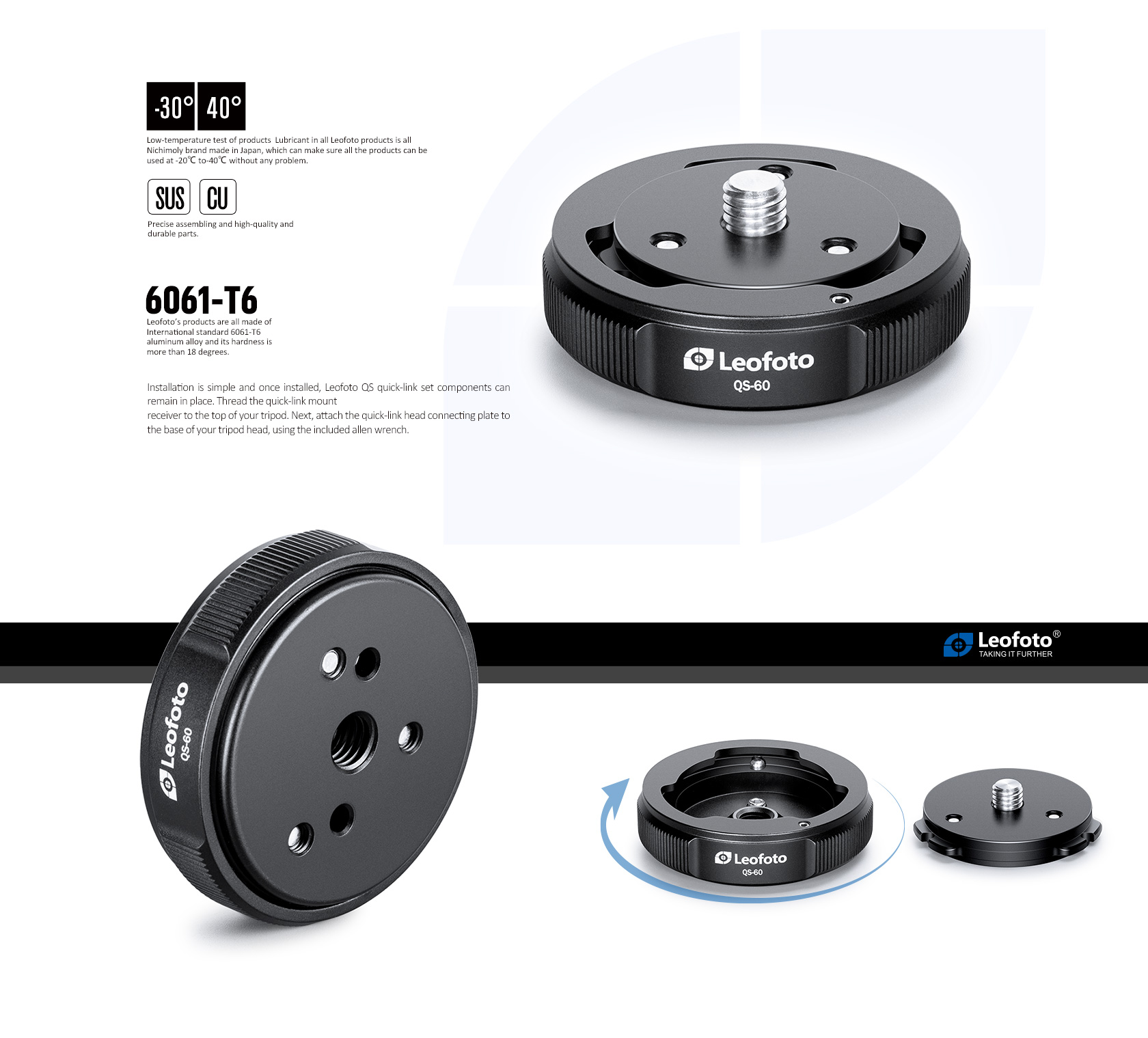 Leofoto QS-60 Quick-Link System Set, Ball Head Quick Release Mount 3/8″