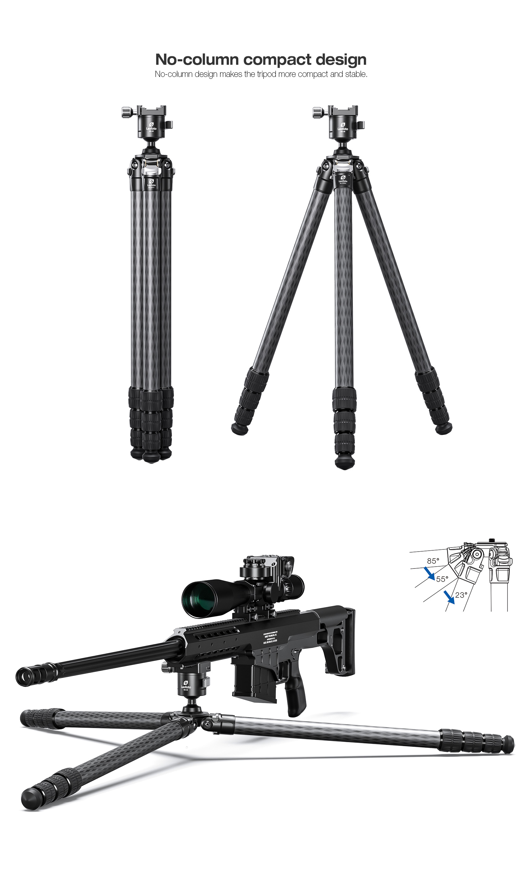The Leofoto SA Series tripods are one of the most compact collapsed setups on the market with a perfectly balanced weight to strength ratio. The angle stop design has also been improved from the standard pull tab to a knurled bar which allows the user to adjust the angles with only one hand as opposed to two. The SA Series offers unparalleled versatility, built as a hunter’s companion who also enjoys long days on the range, but most requested by military, law enforcement, competitive shooters or those simply looking for one of the most compact and reliable shooting supports on the market. The SA Series tripods offer maximum rigidity, capable of supporting non-traditional shooting positions with a heavy load capacity. These tripods feature three angle stop positions to increase shooting capabilities and a compact design which maintains a small footprint, creating a tripod setup which is extremely easy to pack and carry on the go.