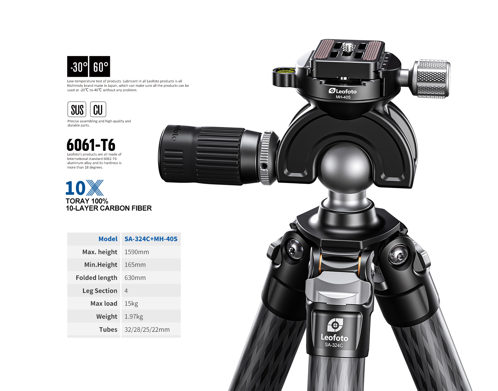 Leofoto SA-324C+MH-40S Professional carbon fiber Tripod