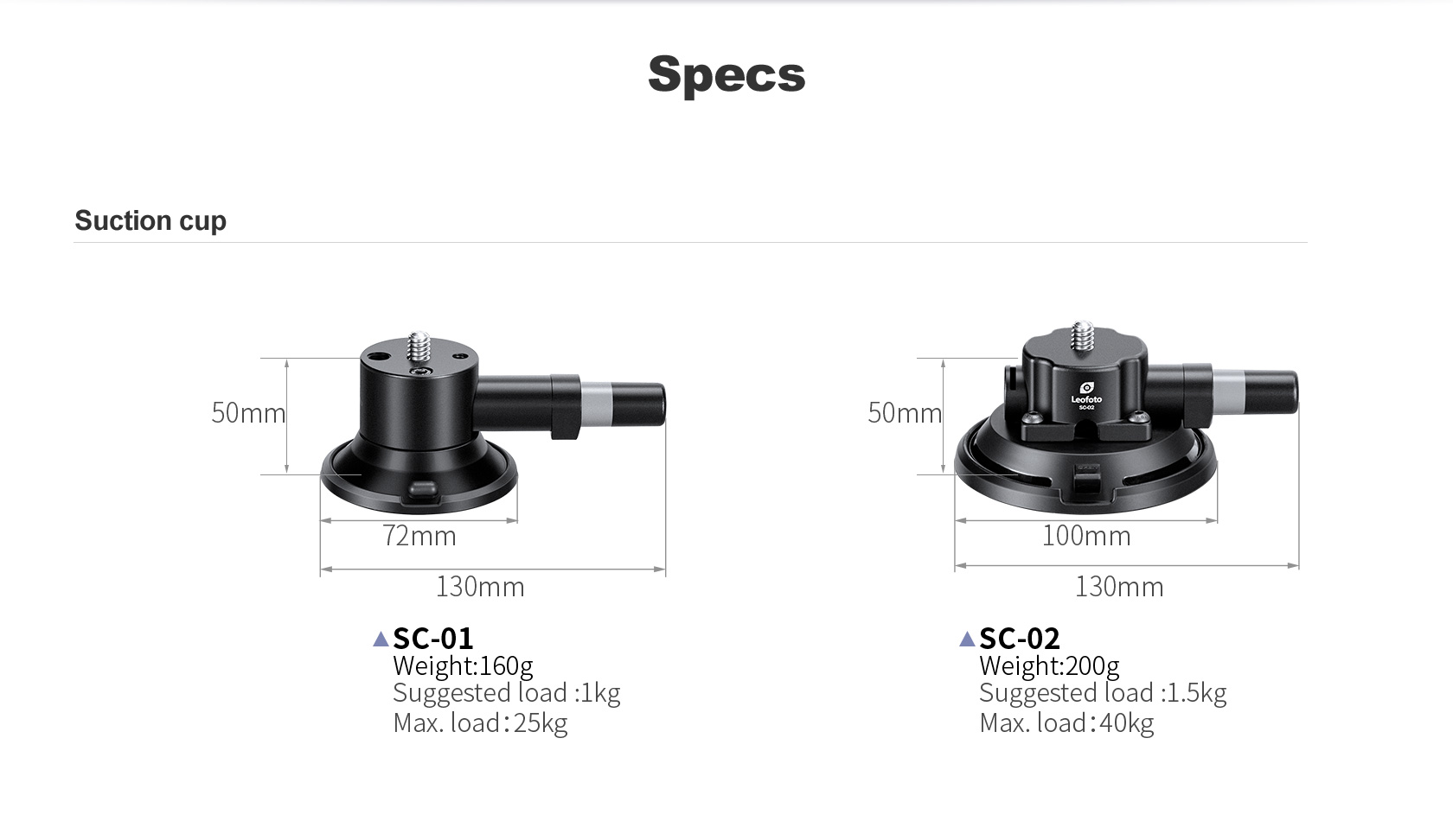 - The Leofoto SC-01 suction cup mounting base provides a strong grip on almost any smooth nonporous surface including countertops, glass, metal and more.
