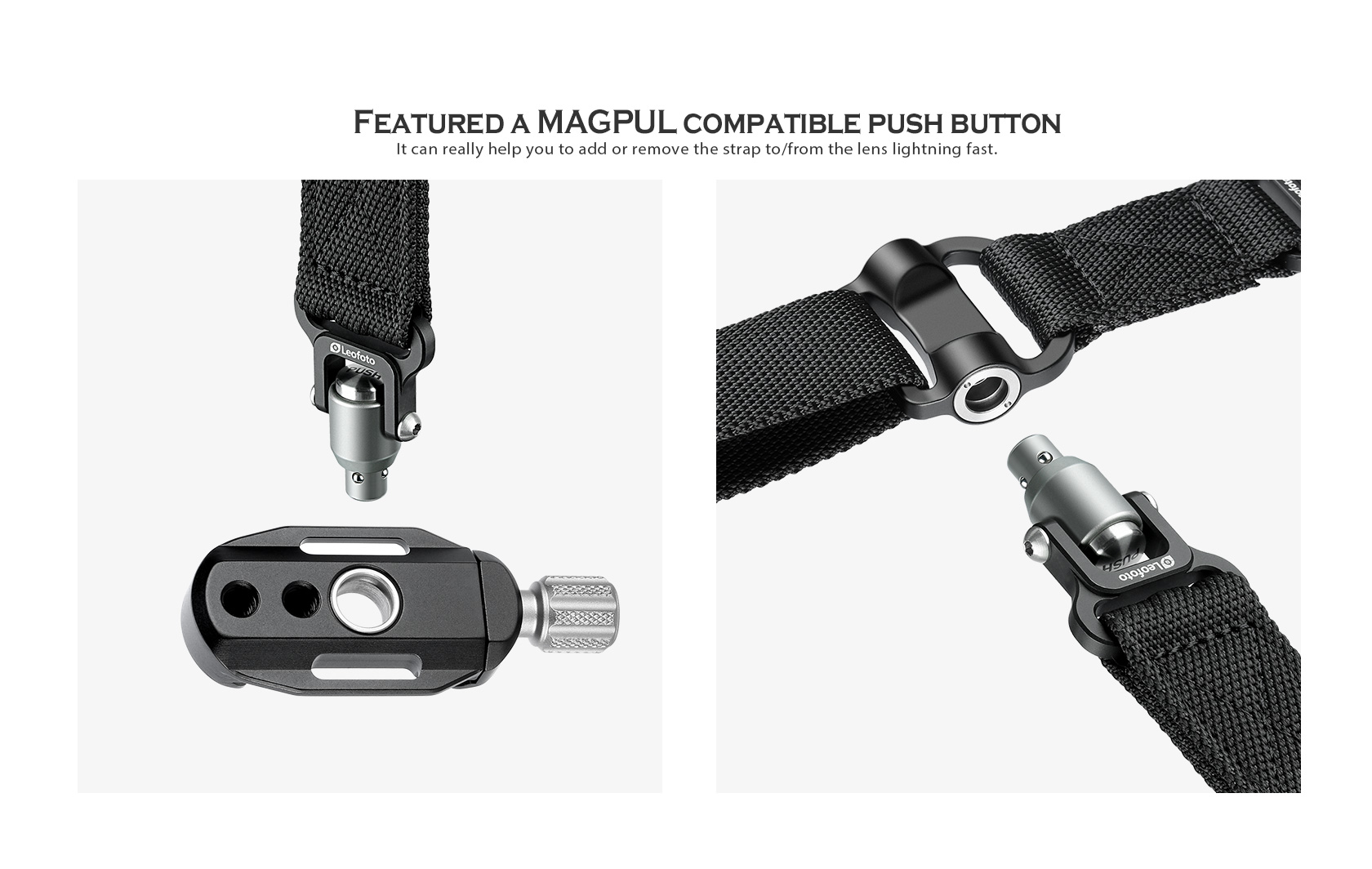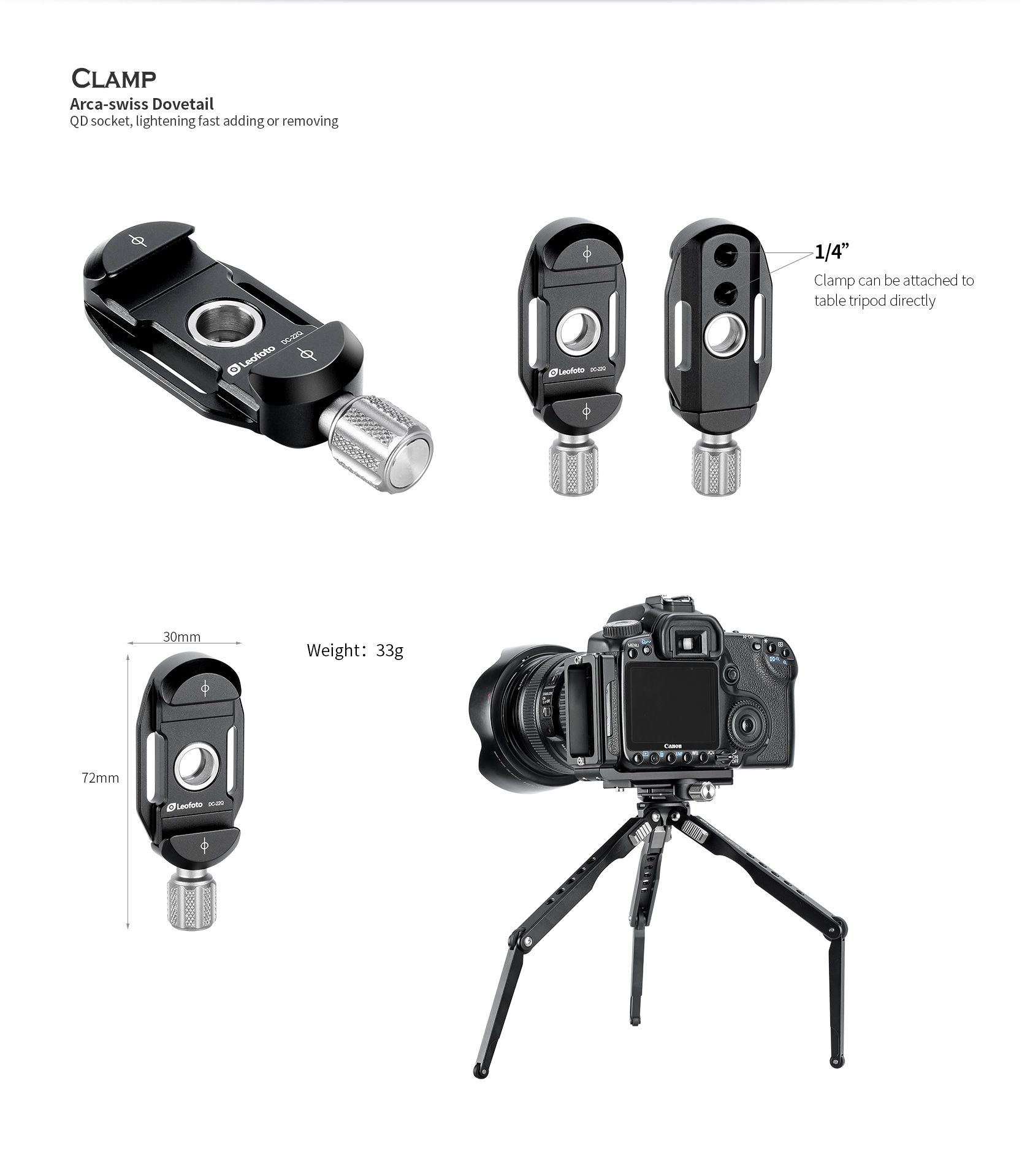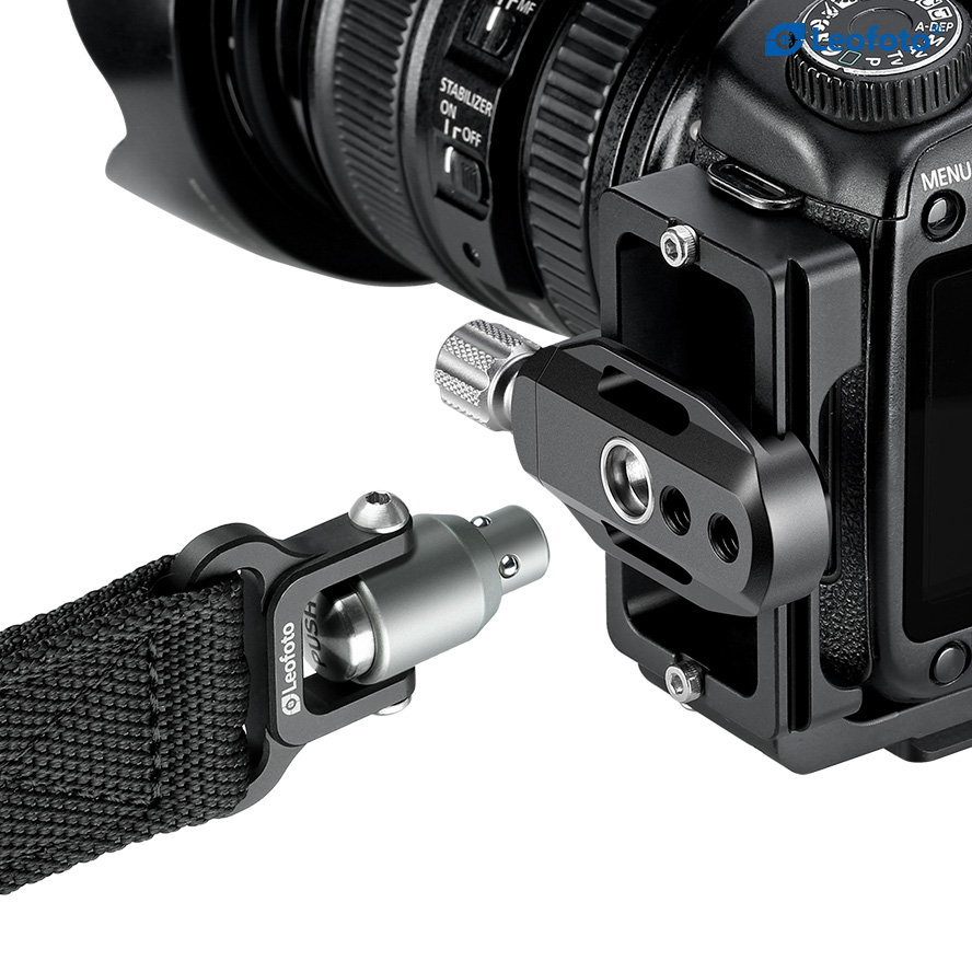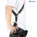 Quickly access your camera when needed and stay mobile with this SP-01+DC-22Q QD Strap & Clamp Kit from Leofoto. The strap is designed to be worn cross-body, draped from one shoulder to the opposing hip. A connected camera can then rest on your the hip so that you can quickly raise it to shoot. The included Arca-Swiss-style dovetail clamp with QD socket allows you to quickly remove your camera and attach it to a tripod. Two 1/4″-20 tripod sockets are located on the bottom of the clamp for standard and tabletop tripod mounting.