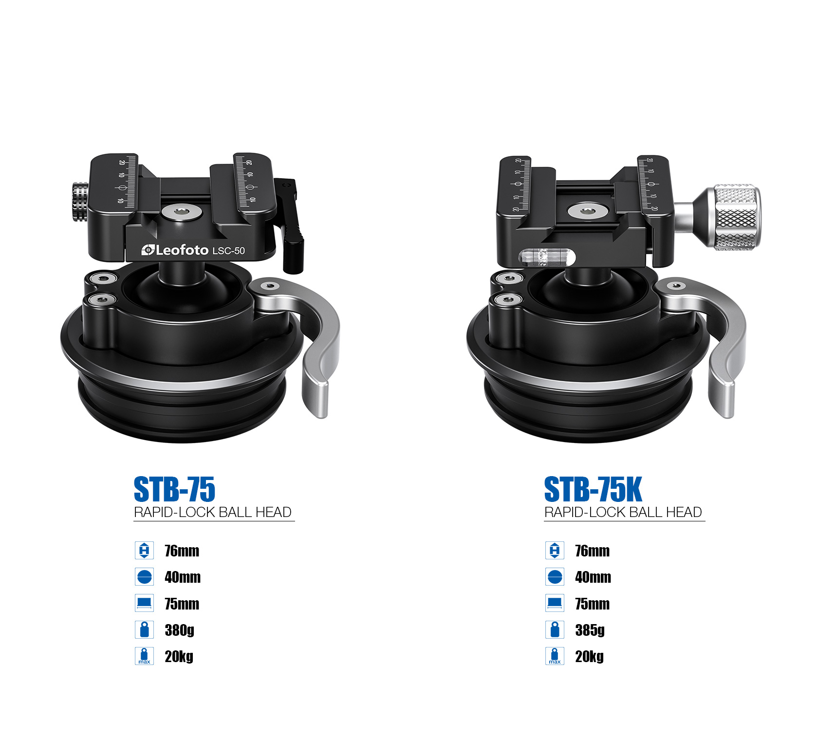 The Leofoto STB-75 Rapid Rifle Ball Head is machined from solid aircraft grade aluminum and hard anodized for the optimal strength and durability. The STB-75 is designed to be used with 75mm compatible systematic tripod apexes. The STB-75 has an integrated 75mm sized systematic adapter and cannot be used as a normal ball head and is not compatible with 3/8″ mounting studs. This product can only be placed into a 75mm systematic tripod apex.