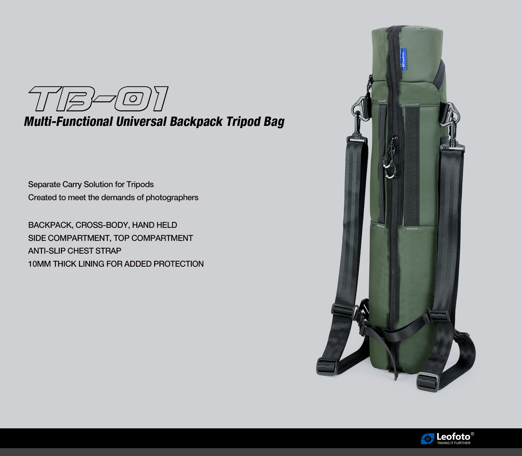 The Leofoto TB-01 Tripod Bag with backpack straps is perfect for those looking for a rugged tripod bag. This tripod bag is extremely durable featuring scratch-resistant and water resistant fabric. It can be carried in various ways due to the many strap options and offers a side compartment as well as a canopy opening for ease of access. The 10mm of EPE cotton will keep the tripod protected.