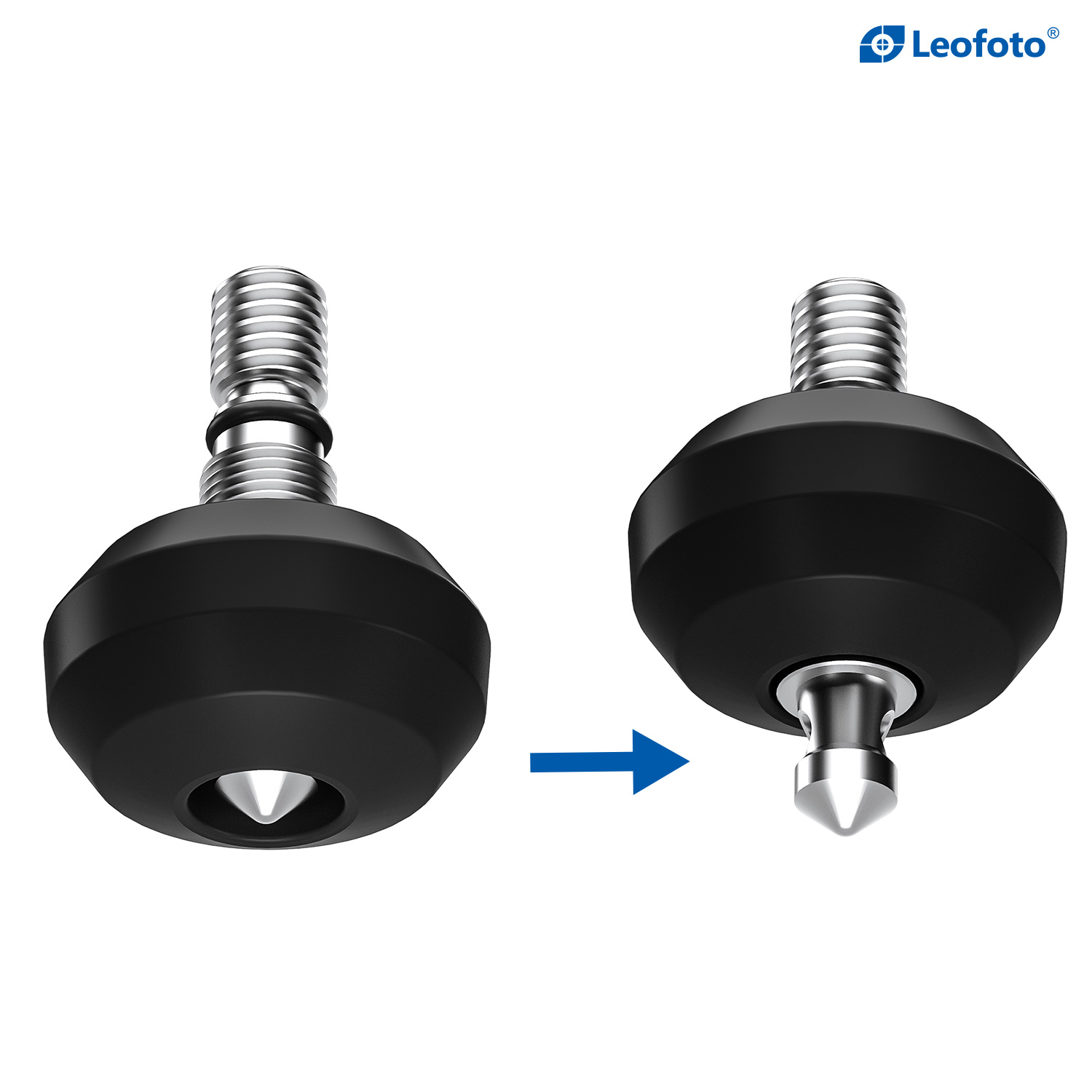Rubber foot and spikes are designed as a whole and they can be exchangeable by turning the rubber foot.