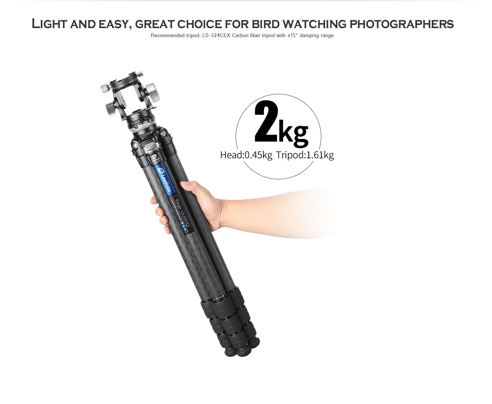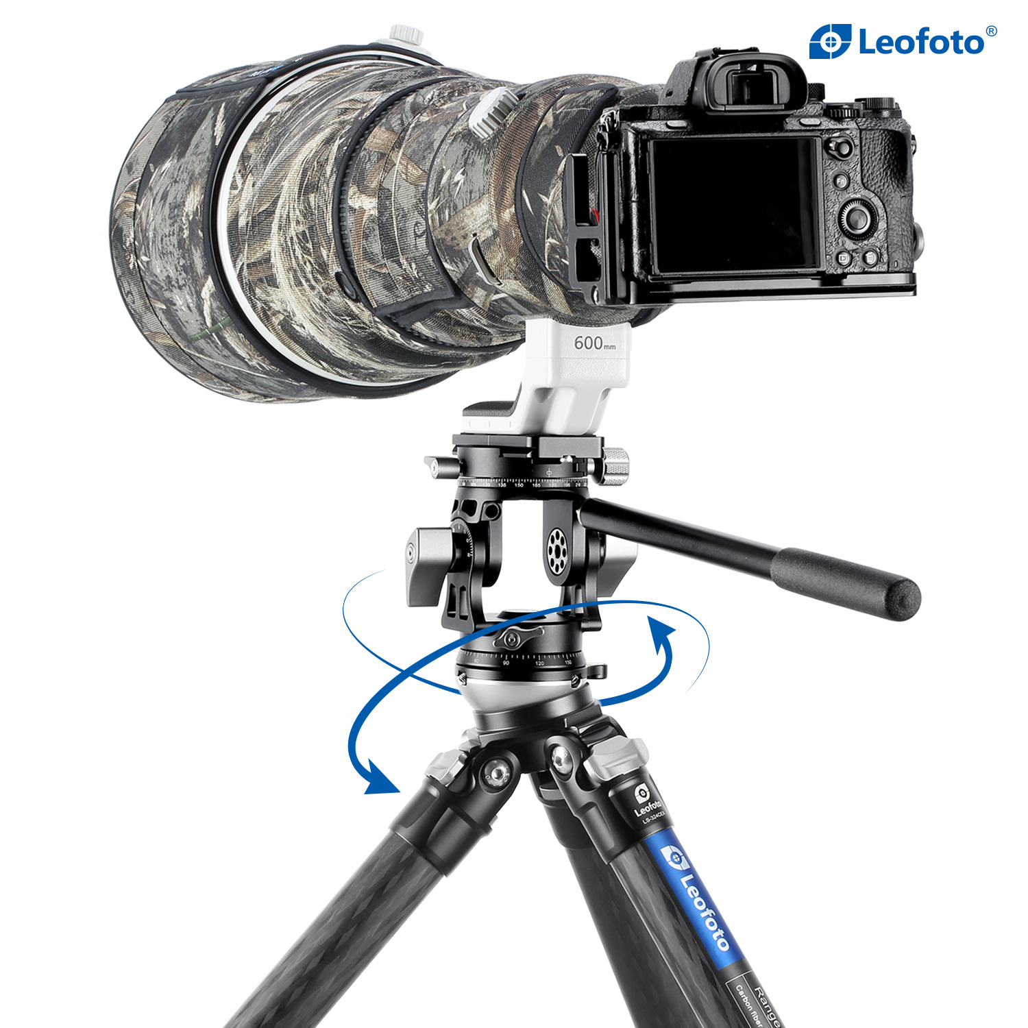The Leofoto VH Series Two-Way Tele Lens Head is a compact tilting head for monopods that is well suited to birdwatching and other wildlife photography and comes with an extra-long quick release plate. The head can tilt +/- 90°, features adjustable tension for customizing movement resistance, and has a large, ergonomic locking lever. The 360° panning base features an independent locking knob. Leofoto knobs are spring-loaded for easy position adjustment to prevent hindered movement.