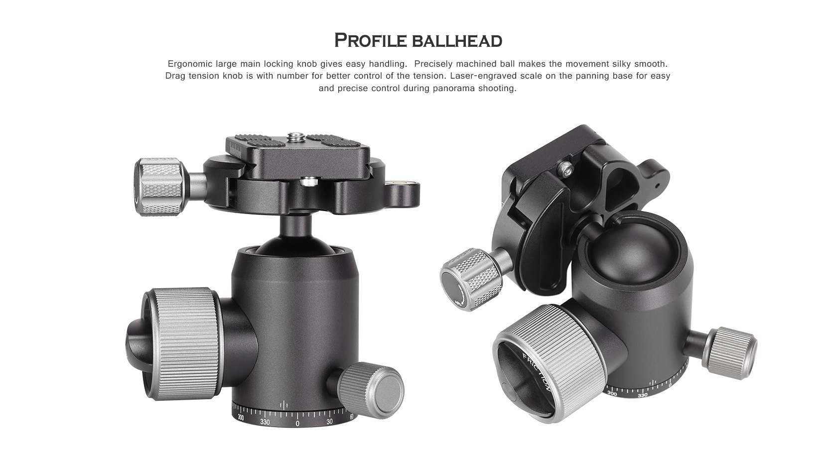 The Leofoto XB-32 Ball Head with BPL-50 Quick Release Plate is designed to be used with the Leofoto LX Urban Series tripods but can be mounted to any tripod with a 3/8″ mounting stud. The XB Series ball heads feature a panning lock knob and a large ball locking knob with tension control on the inner knob. The laser engraved graduated scale provides precise centering and positioning. The XB Series ball heads are ideal for travelers and those on the go.