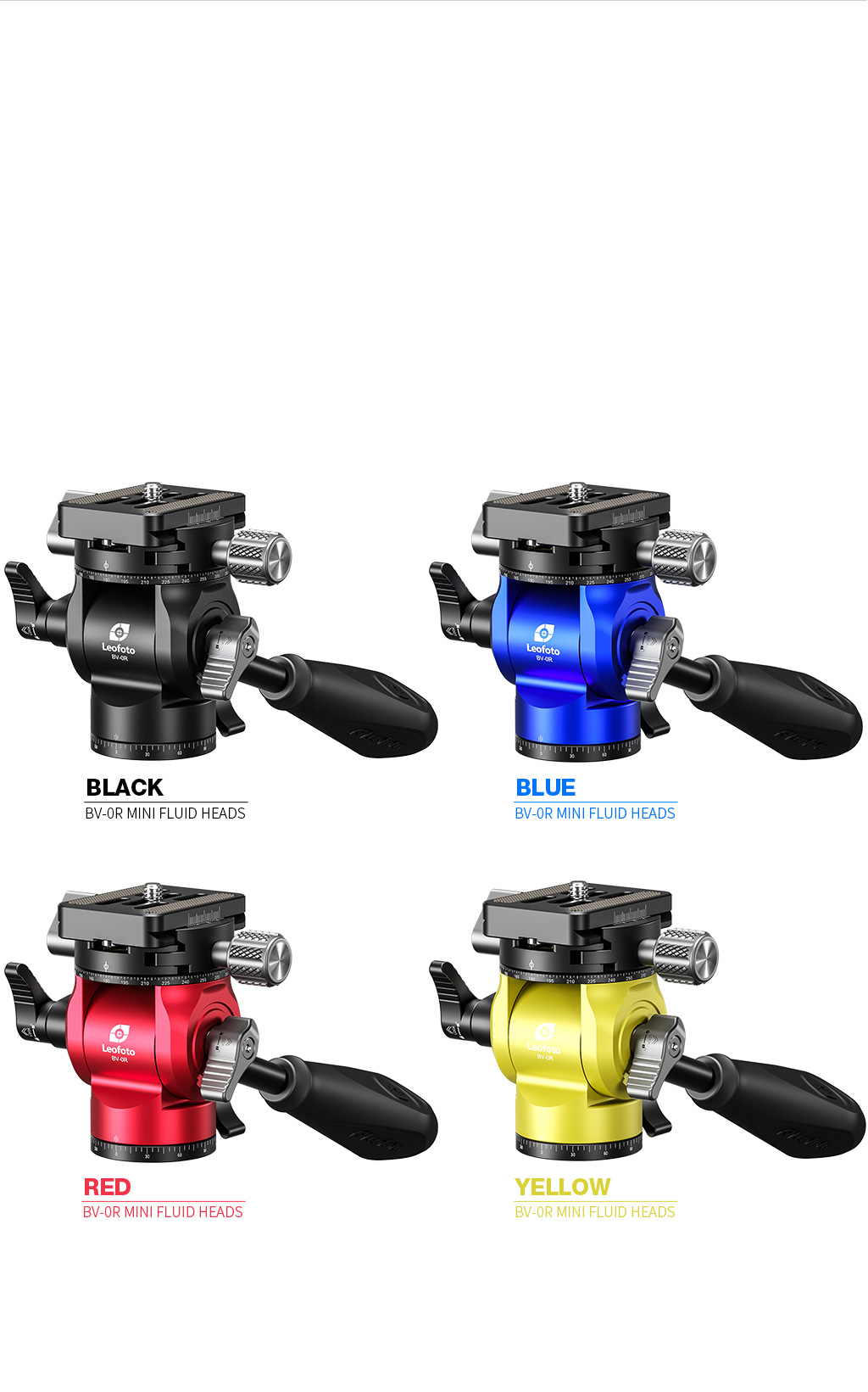 The BV-OR Mini fluid heads are CNC machined from aircraft grade aluminum and hard anodized for the optimal strength to durability ratio. The extremely compact and low-profile design is perfect for the traveler on the go.
