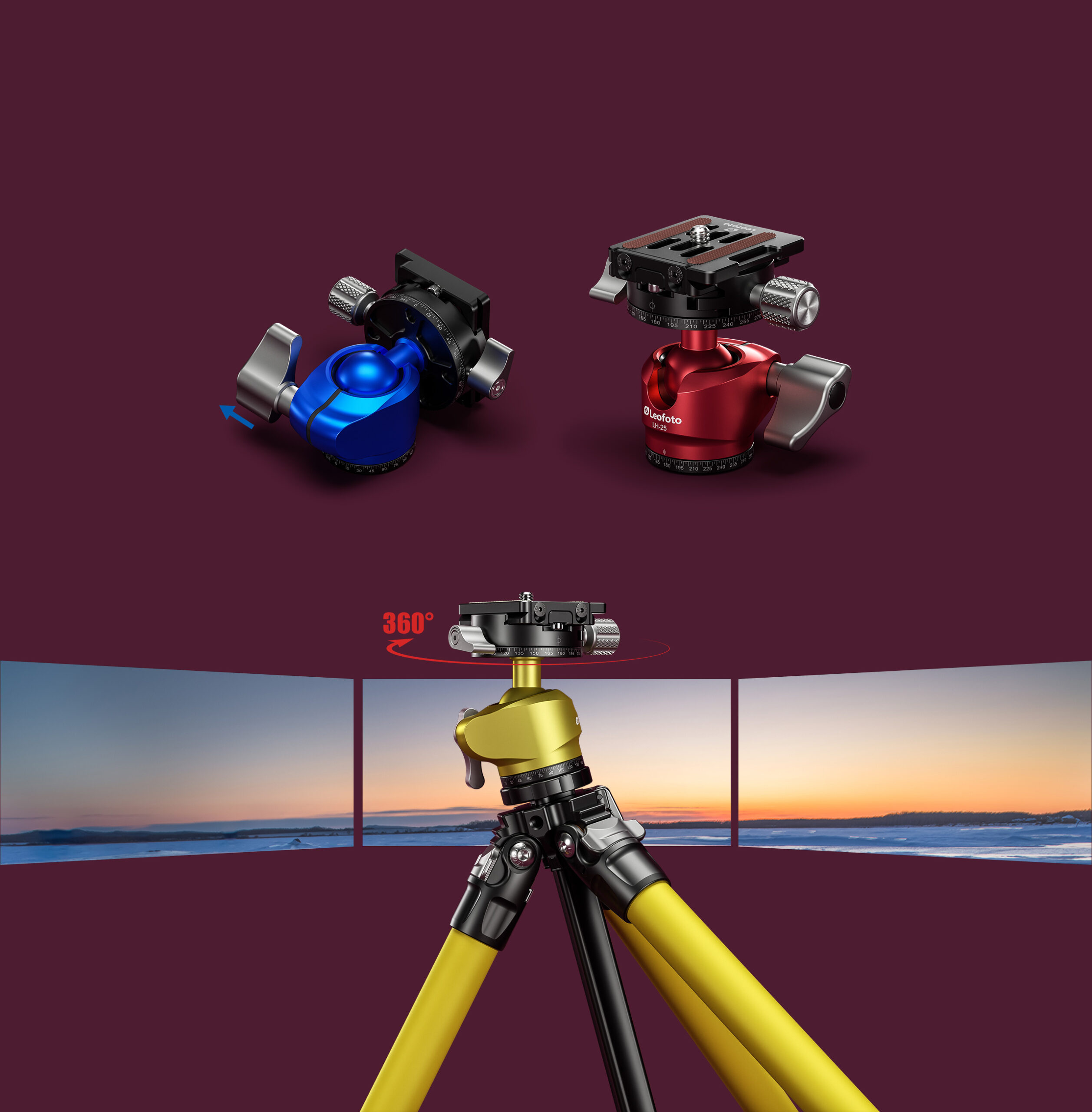 Ergonomic large main locking knob gives easy handling. Low height profile gives better reliability. Precisely machined ball makes the movement silky smooth. .Laser-engraved scale on the panning base for easy and precise control during panorama shooting.