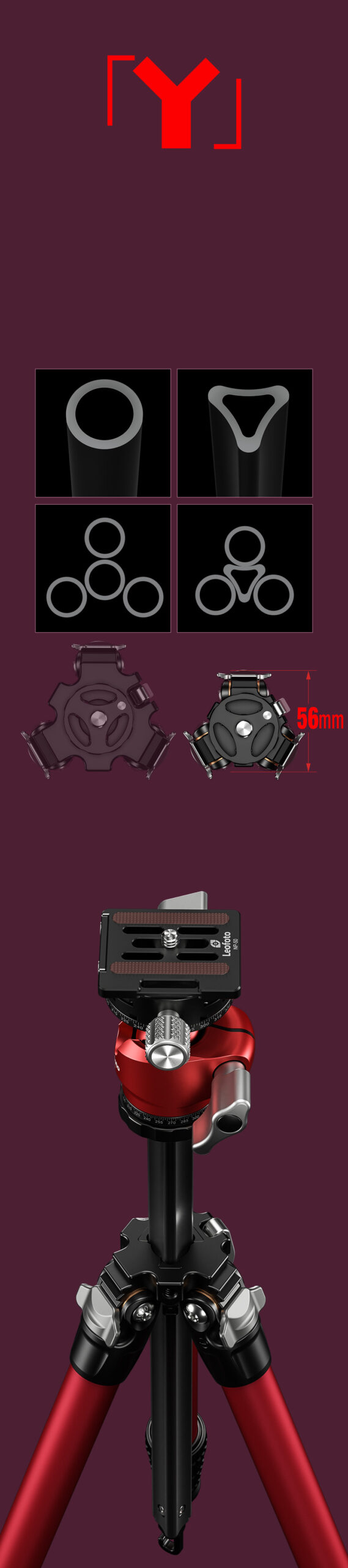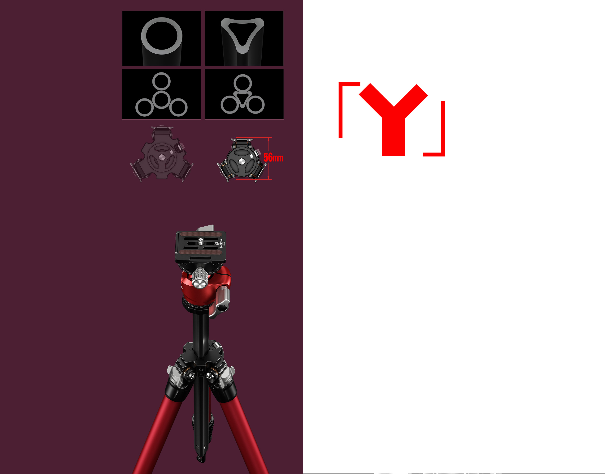 Tripod with Y-shaped center column is more compact and 3 legs are more tight and more stable than tripod with round center column when the diameter of leg is same.