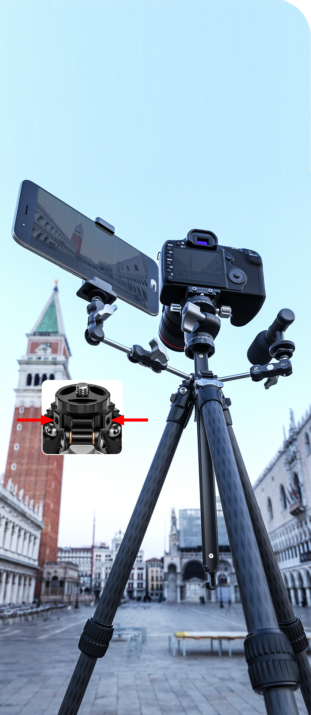 Most of the tripods in the market are with only angles including low, middle and high angles. To help photographers who go windy outdoors for shooting, we add a 42° setting to the tripod to make sure that even in windy outdoors, the shooting can still be stable.