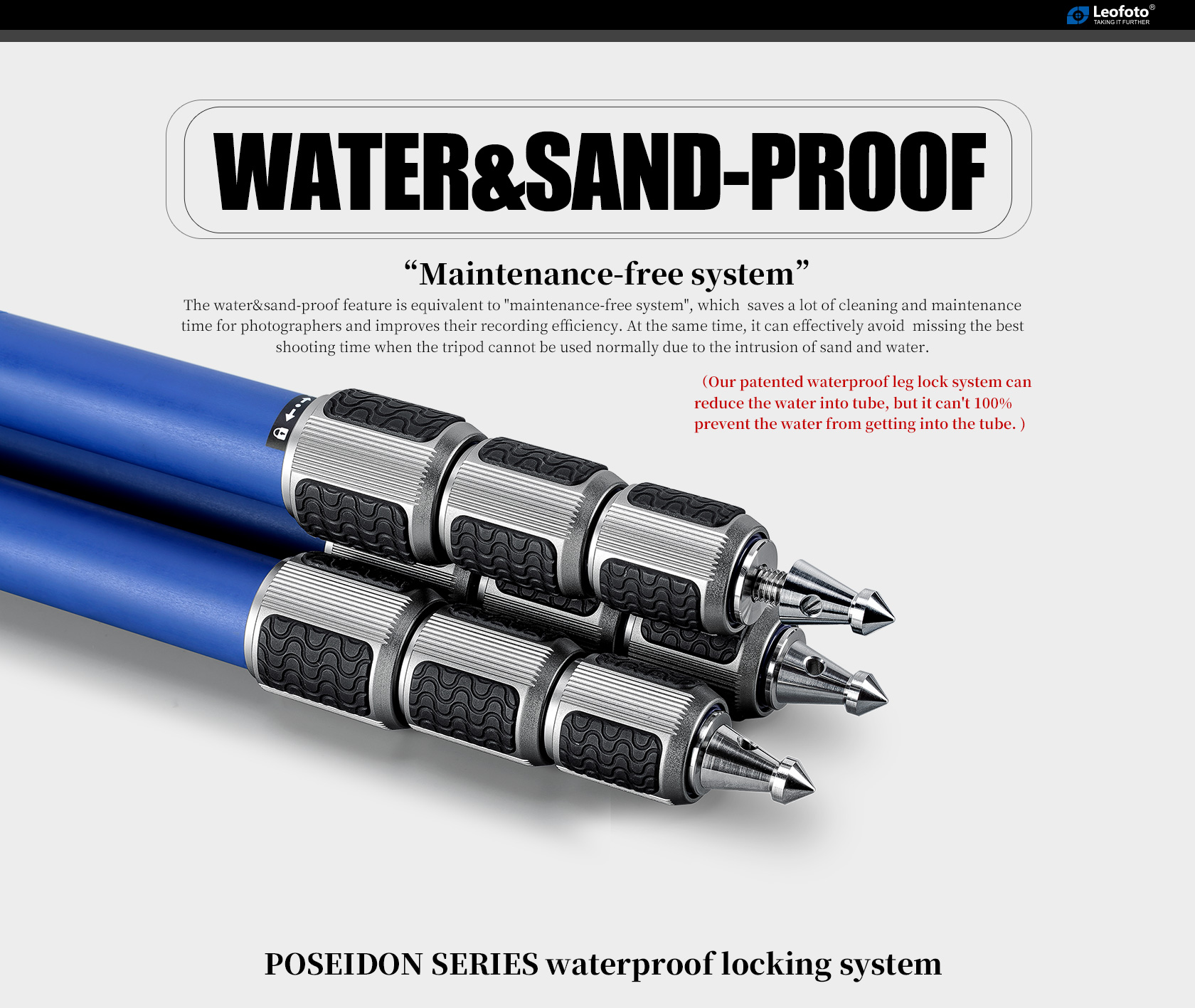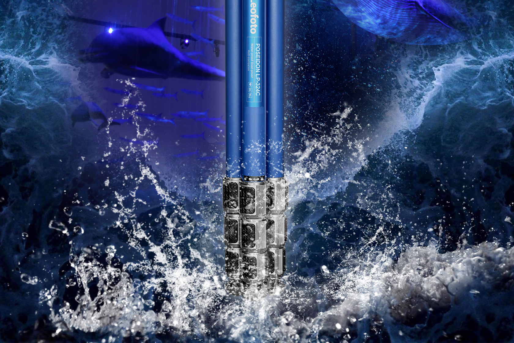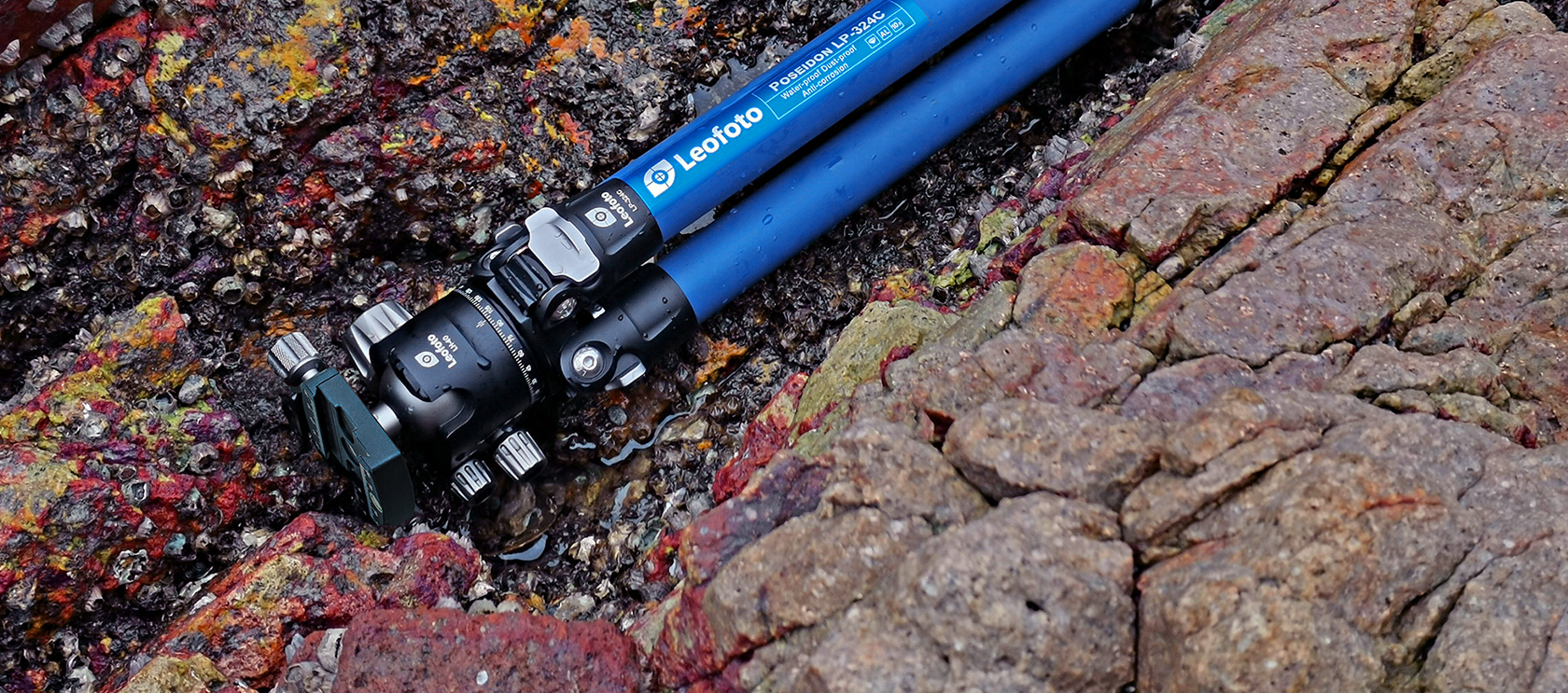 The Poseidon Ocean Tripod. It is designed for use in harsh, wet environments. Made with 10-layer carbon fiber leg tubes and titanium components, it provides excellent corrosion resistance and makes it suitable for use in a variety of conditions. The tripod also features twist-lock joints that repel water, sand, and debris, which helps to minimize the need for maintenance. The LP series tripod features a fixed, compact apex.
