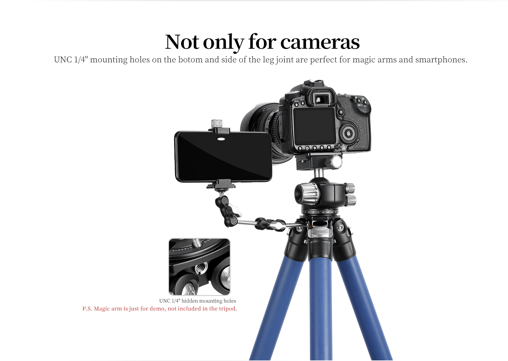 - 1/4″-20 threaded Accessory Socket for Monitor, Microphone, LED light or More